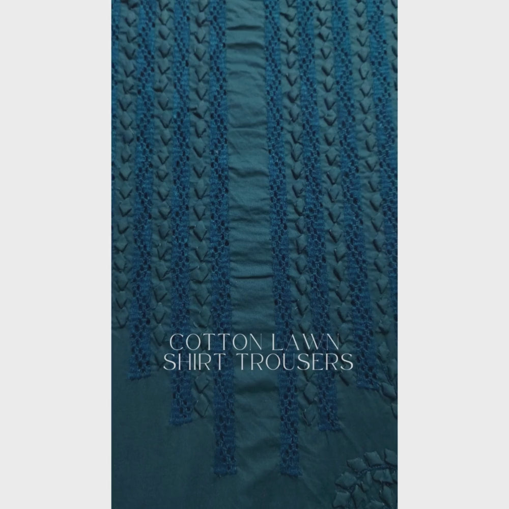 albaas | Tarkashi Applique on Cotton Lawn Shirt's Front and Sleeves with Matching Plain Trousers - Unstitched 2PC Suit | ALTAST-36553-MOONSTONE