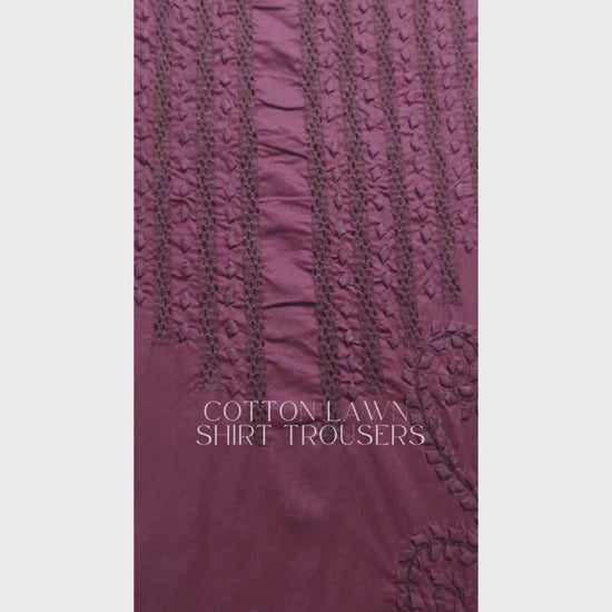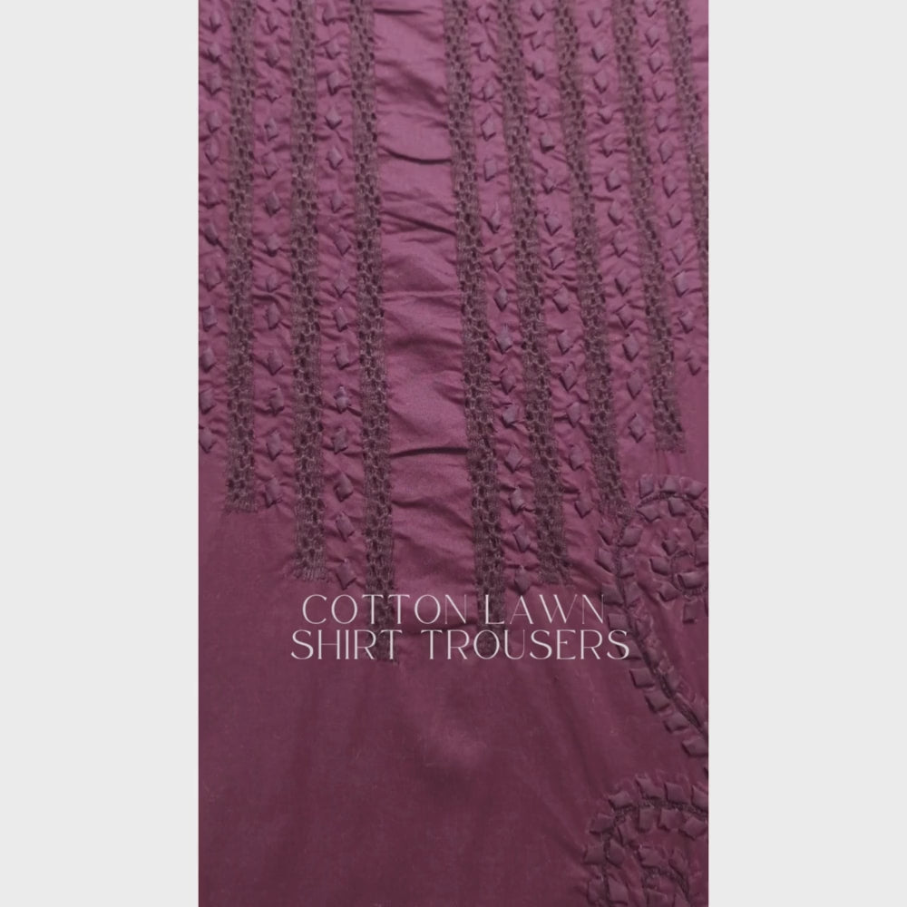 albaas | Tarkashi Applique on Cotton Lawn Shirt's Front and Sleeves with Matching Plain Trousers - Unstitched 2PC Suit | ALTAST-36553-PASSIONATE PLUM
