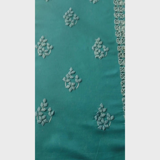 albaas | Tarkashi Applique on Cotton Lawn Shirt's Front and Sleeves with Matching Plain Trousers - Unstitched 2PC Suit | ATACLST-36535-TEAL