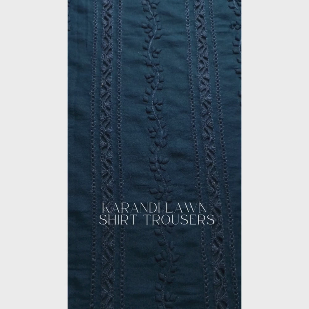 Transform your wardrobe with this stunning albaas | KARANDI LAWN TARKASHI APPLIQUE shirt and sleeves with matching plain trousers as an unstitched set. π TheΒ intricate work adds an elegant touch, while the lightweight fabric ensures all-day comfort. βοΈ Perfect for any occasion, this set is a must-have to elevate your style! β¨