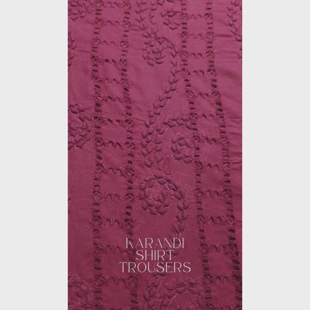 Transform your wardrobe with this stunning albaas | KARANDI TARKASHI APPLIQUE shirt and sleeves with matching plain trousers as an unstitched set. 🌟 The intricate work adds an elegant touch, while the lightweight fabric ensures all-day comfort. ☁️ Perfect for any occasion, this set is a must-have to elevate your style! ✨