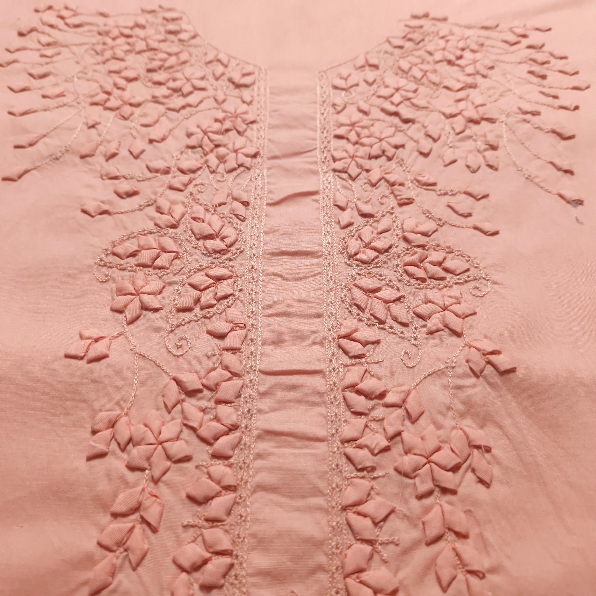 albaas | Tarkashi Applique on Cotton Lawn Shirt's Front and Sleeves with Matching Plain Trousers - Unstitched 2PC Suit | ALTAST-36546-APRICOT