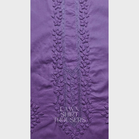albaas | Tarkashi Applique on Cotton Lawn Shirt's Front and Sleeves with Matching Plain Trousers - Unstitched 2PC Suit | ALTAST-36548-LIGHT ORCHID
